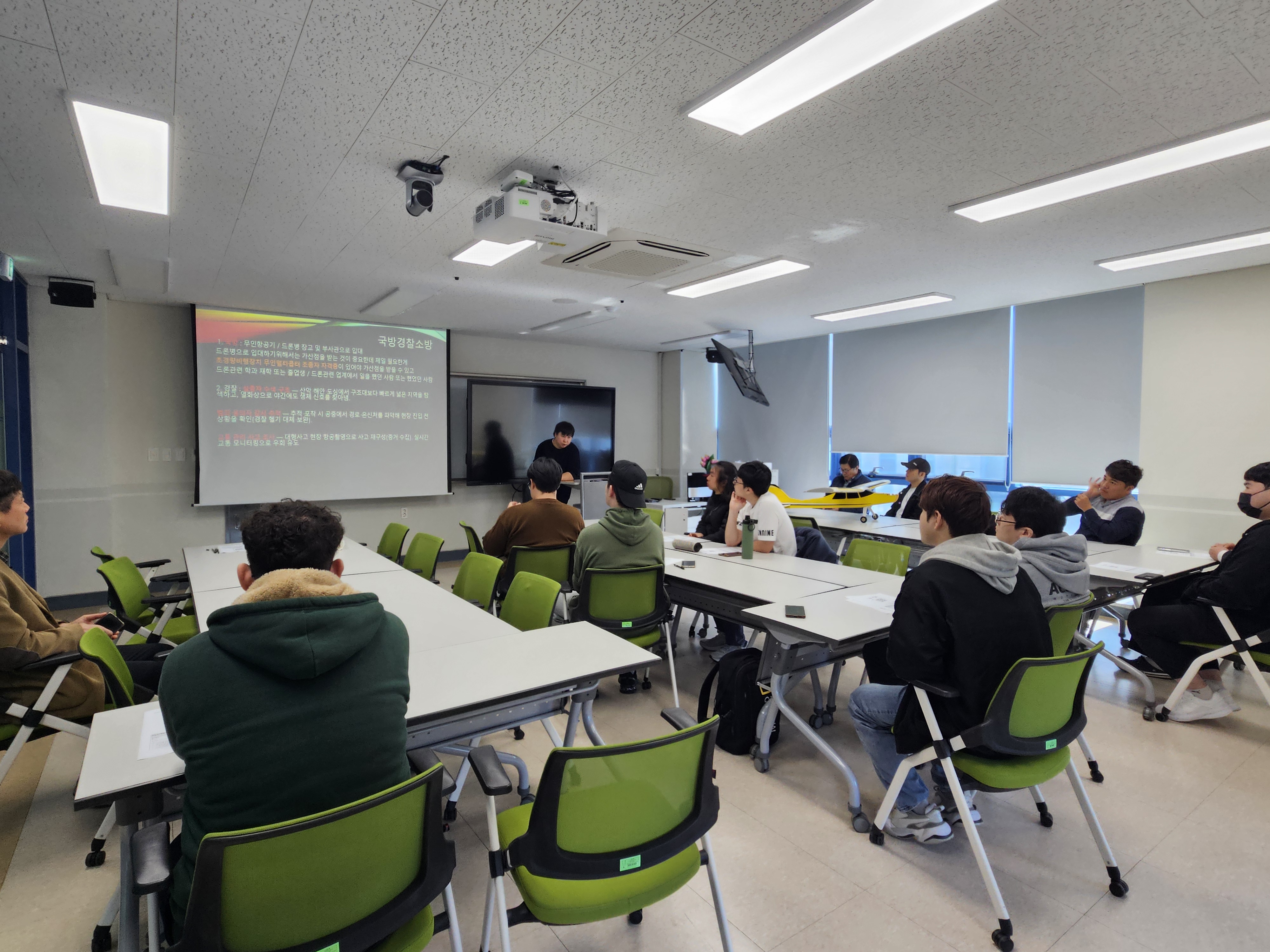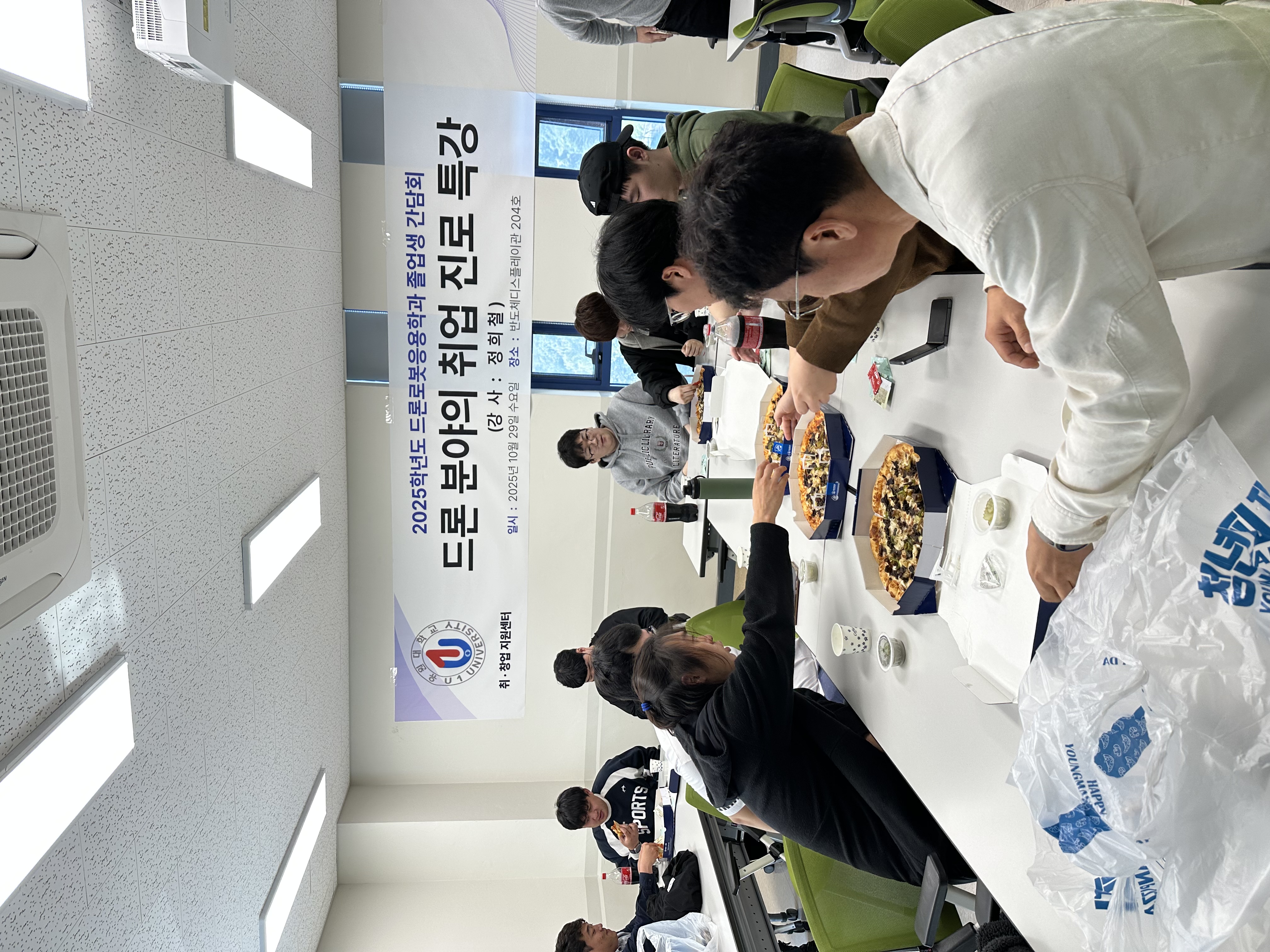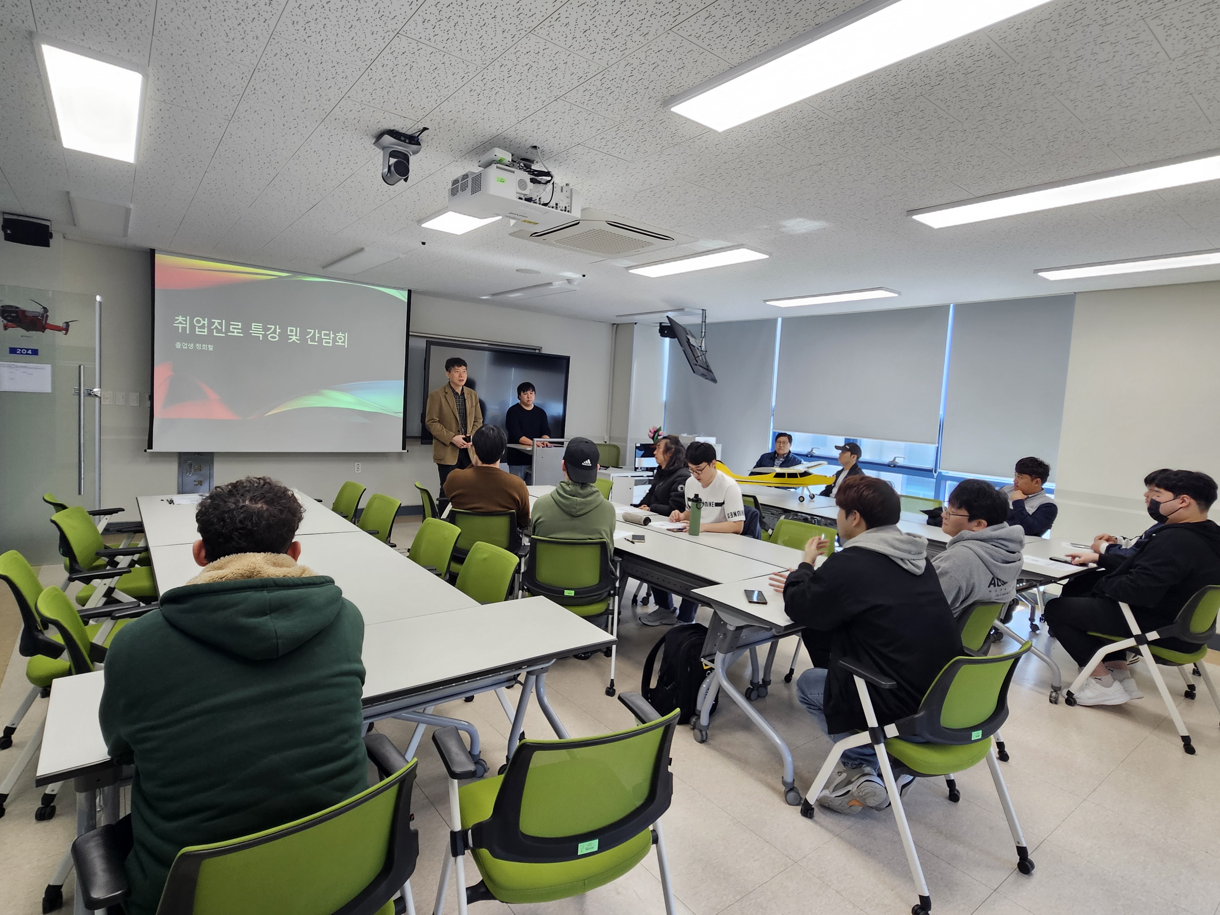 -졸업생(정희철/2025년 졸업, 남경무인항공, 교육팀 교관; 조민혁/2023년 졸업, 현재 현역 공군)을 초청하여 취업 진로에 대한 조언, 후배들이 궁금한 것 중심으로 간담회 진행함.